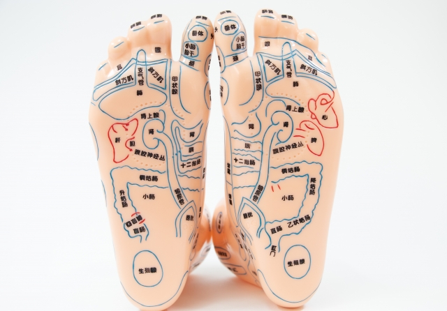 「ツボ」と「反射区」は似ているようで少し意味が異なります。東洋医学の「ツボ(経穴)」は経絡上の特定の点を指すのに対して、「反射区」は対応する臓器・器官と連動するエリア(面)のことを指します。