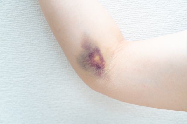 血管は、外からの刺激を受けると損傷しますが、通常は血小板と凝固因子がすばやく働いて止血します。ところが、血管そのものが弱くなっていたり、血小板の数が少なかったり、凝固因子が不足している状態だと、ちょっとした刺激でも内出血が起きやすくなります。この「ちょっとした刺激」は、服の袖が擦れる程度や、軽く腕をぶつけた程度のことも含まれます。