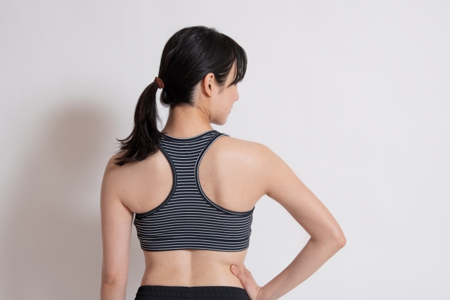 菱形筋は肩甲骨の内側から背骨にかけてある筋肉で、僧帽筋と連動して肩甲骨を内側に寄せる働きをします。これらの筋肉を意識的に使えるようになると、肩甲骨の位置が整いやすく、胸を開いた姿勢をキープしやすくなるのです。