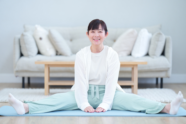 股割りには、体幹の筋力強化とストレッチが同時にできるというメリットがあります。これにより運動機能の低下を防いで怪我をしにくくなり、さらに血流が良くなることで老廃物の排出がスムーズになって代謝アップにもつながるのです。下半身の冷えやむくみの緩和といった効果も期待できます。