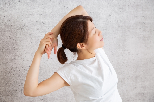 肩甲骨を動かすことで首周りの血流が改善され、リンパの流れもスムーズになると言われています。肩を大きくゆっくりと回す運動を1日10回程度行ってみてください。デスクワークの合間にできる簡単なストレッチですね。