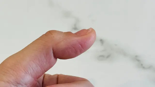 爪は乾燥すると弱くなり、割れやすくなったり、へこみができやすくなったりします。水仕事や洗剤の使用は爪の乾燥を招く要因になるため、注意が必要でしょう。また、靴による圧迫など物理的な刺激も爪のへこみの原因になることがあります。爪をぶつけるなどの外傷によって横線や横溝ができることもあるんですね。