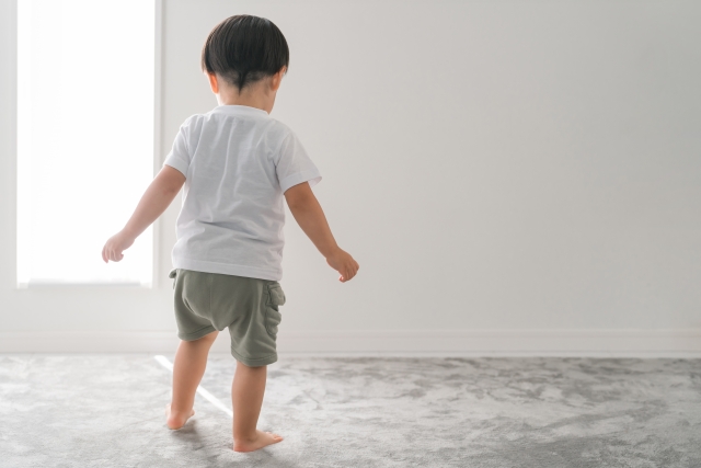これは足の筋肉や関節がまだ発達途中であるためで、成長とともに自然に改善していくケースがほとんどです。足の裏全体を使って歩く感覚がまだ身についていないため、歩き方が不安定に見えることもあります。