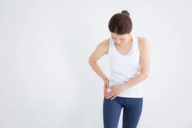 鼠径ヘルニアは腸の一部が鼠径部から飛び出してしまう状態で、立ち上がる時や力を入れた時に足の付け根に痛みや違和感が出ます。女性は男性に比べて発症率は低いですが、妊娠や出産、加齢による筋力低下で起こることがあります。