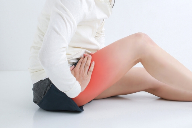 外側(大転子のあたり)の痛みは、大腿筋膜張筋や中殿筋などの筋肉の問題が多いです。横向きで寝ると痛い、歩くときに外側がズキズキするという訴えがよく聞かれます。特に産後の女性や長時間の歩行後に外側が痛むケースは骨盤のゆがみが関係していることが多いです。