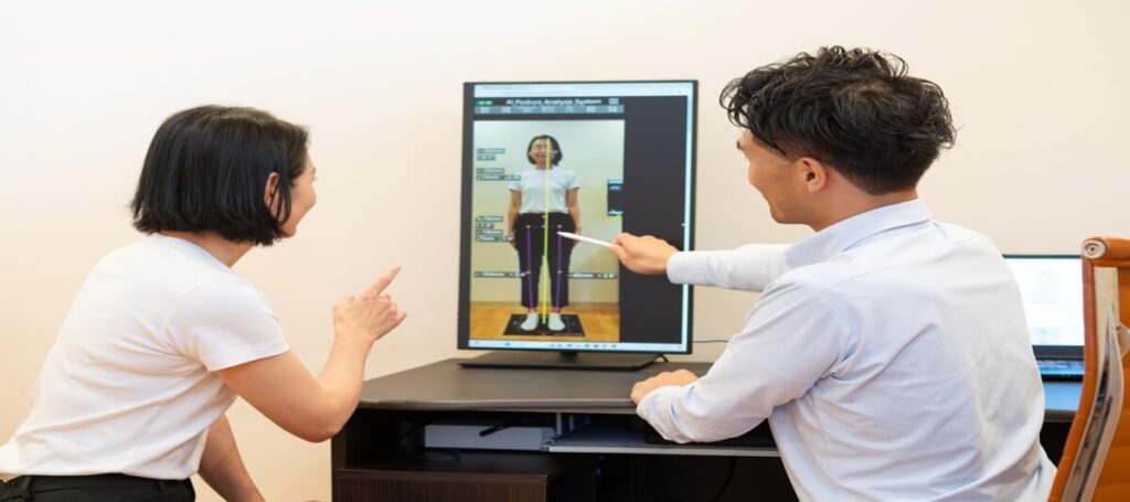 私たちの整体院では、まず詳しい問診と姿勢分析から始めます。最新のAI姿勢分析システムを使って体の歪みを数値化し、膝だけでなく全身のバランスを確認していきます。膝の痛みの原因は膝そのものだけでなく、骨盤の歪みや足首の問題、筋肉のバランスの崩れなど様々な要因が絡み合っていることが多いためです。