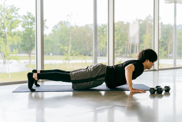 いきなり腕立て伏せを始めるのではなく、軽く肩を回したり腕を振ったりして、関節と筋肉を温めてから行いましょう。特に朝起きてすぐや、長時間デスクワークをした後は、体が固まっているので入念な準備運動が必要です。