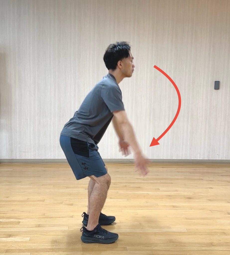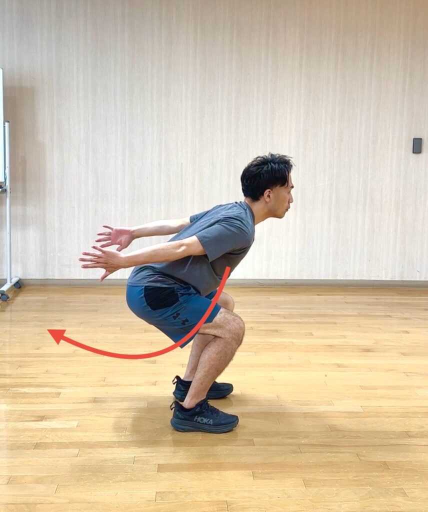 - 腰が前に傾いてしまい背中は動いていない