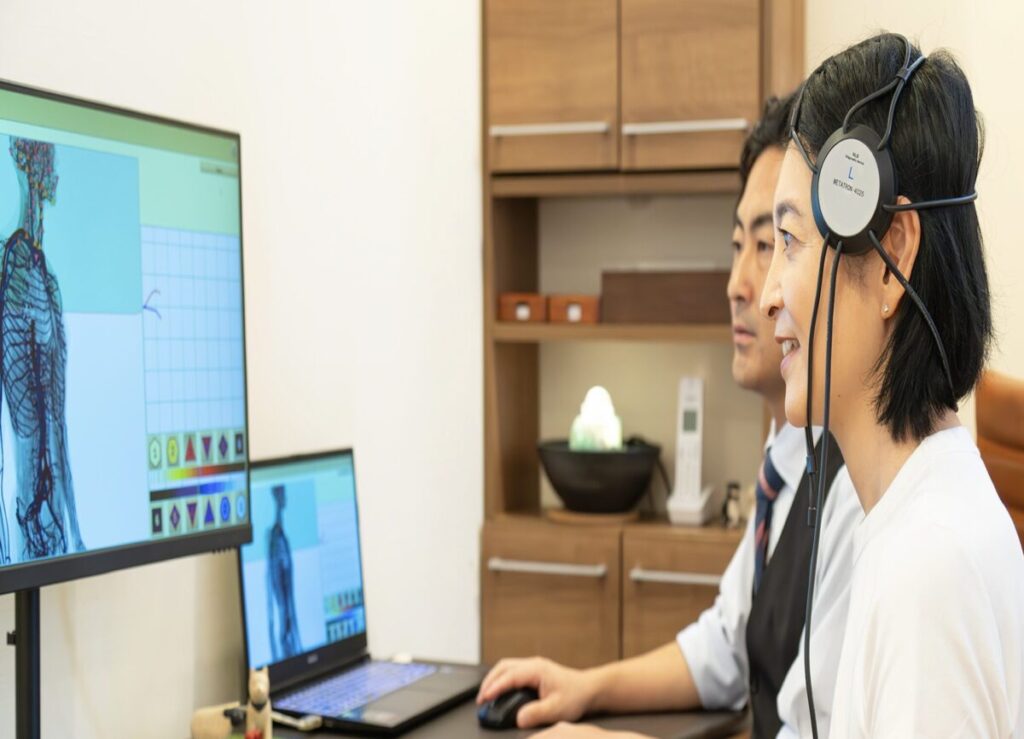 筋肉の回復には栄養と休息が欠かせません。タンパク質やビタミン、ミネラルをバランスよく摂取して、しっかり睡眠をとることで体の修復力が高まります。当院のメタトロン測定では、あなたに不足している栄養素や体質に合った食材もわかるので、より効率的に体を整えることができますよ。