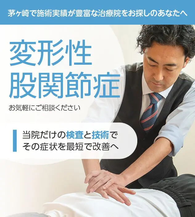これまで様々な変形性股関節症の治療をして改善しなかったとしても諦める必要はありません。変形性股関節症は豊富な施術実績を誇る当院にお任せください。