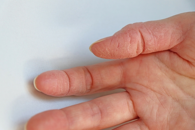 痛風は血液中の尿酸値が高くなり、関節に結晶が沈着することで激しい炎症が起きる病気です。足の親指の付け根が有名ですが、手の指に起きることもあります。
