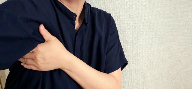 肋骨の間を走る肋間神経が刺激を受けると、脇から胸にかけてピリッとした痛みが走ることがあります。これを肋間神経痛と言います。特に深呼吸や体をひねる動作のときに痛みが強くなるのが特徴で、「息を吸うと脇が痛い」という方の多くはこのケースに当てはまります。