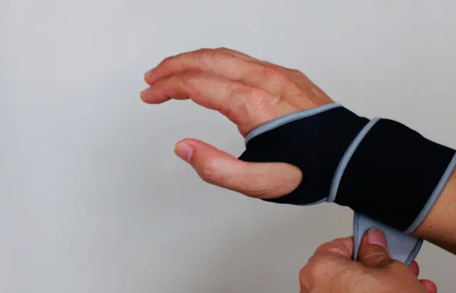 この場合は親指から手首を一緒に固定できるタイプのサポーターが有効で、親指の動きを制限しながら手首を安定させることが改善につながります。金属プレートが入ったものや、親指にもスリーブが伸びているものが代表的です。